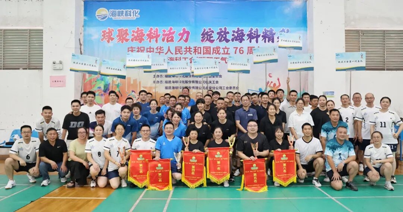 海峽科化公司舉辦慶祝新中國成立76周年暨第三屆“??乒甭毠馀徘蛸悺Y悎錾?,12支代表隊運動員們全力以赴、默契配合,在攻防交替中充分彰顯“協(xié)同拼搏、追求卓越”的??凭瘢鷦釉忈屃恕吧舷峦?、風雨同舟”的團隊理念。大家紛紛表示,將把賽場上的激情與活力延續(xù)到工作中,以飽滿的熱情為推動海峽科化公司高質量發(fā)展注入新動力。